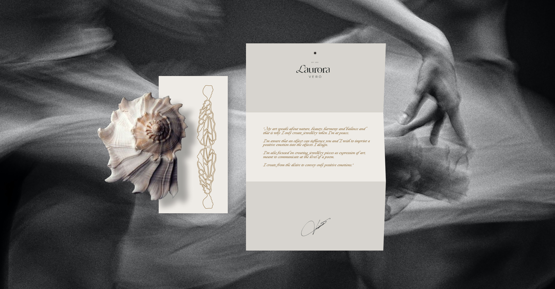 L'Aurora Vero is my personal creative universe — a space where design steps aside and art becomes wearable. When I’m not shaping brands or building digital systems, I work with form, material, and intuition to create contemporary art jewellery that speaks quietly, but deeply.